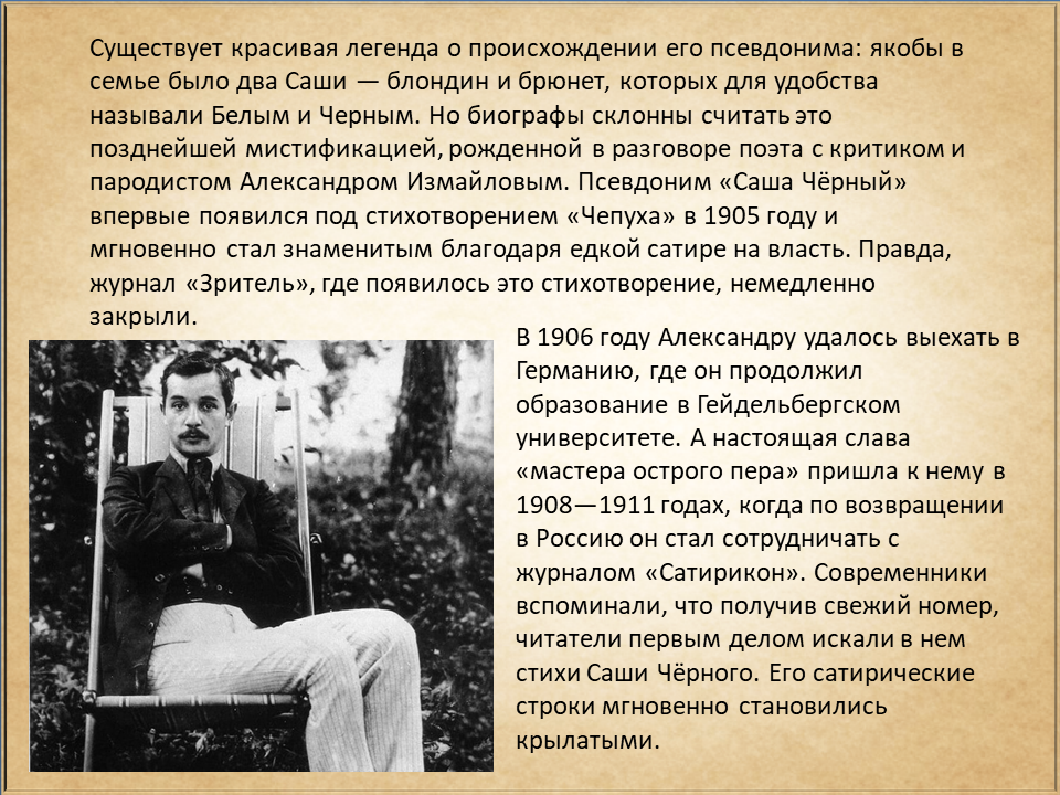 13 октября — 145 лет со дня рождения русского писателя Саши Черного (Александр Михайлович Гликберг) (1880–1932).