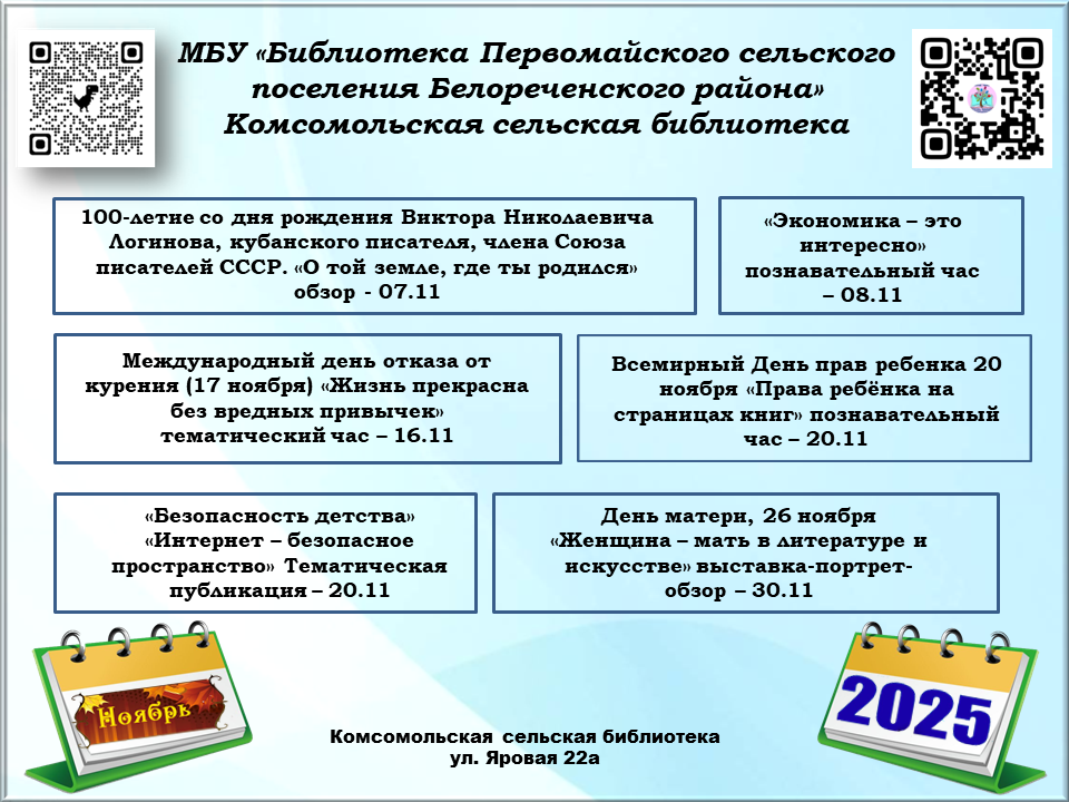 Афиша на ноябрь, Комсомольская сельская библиотека
