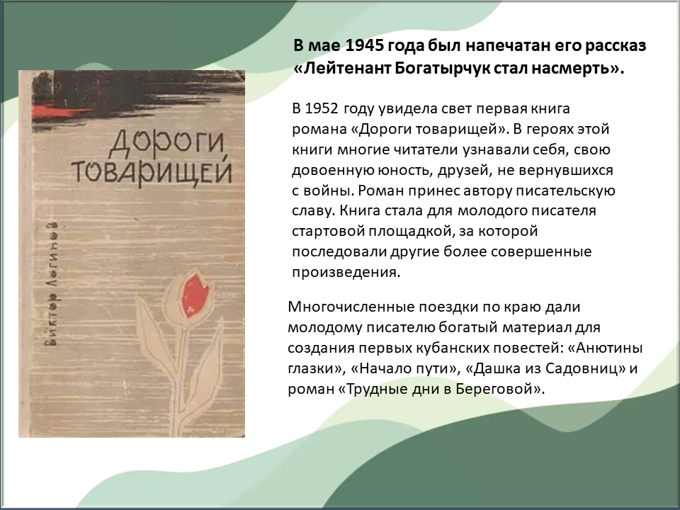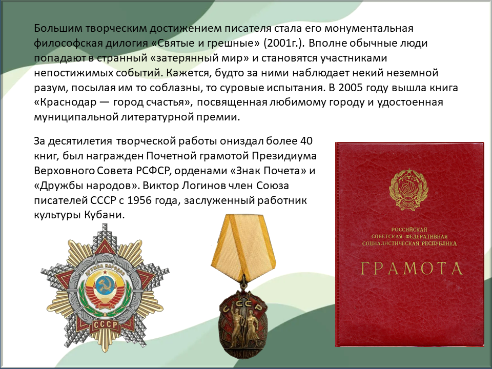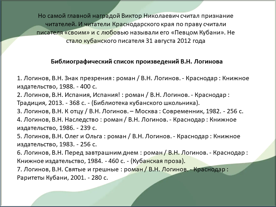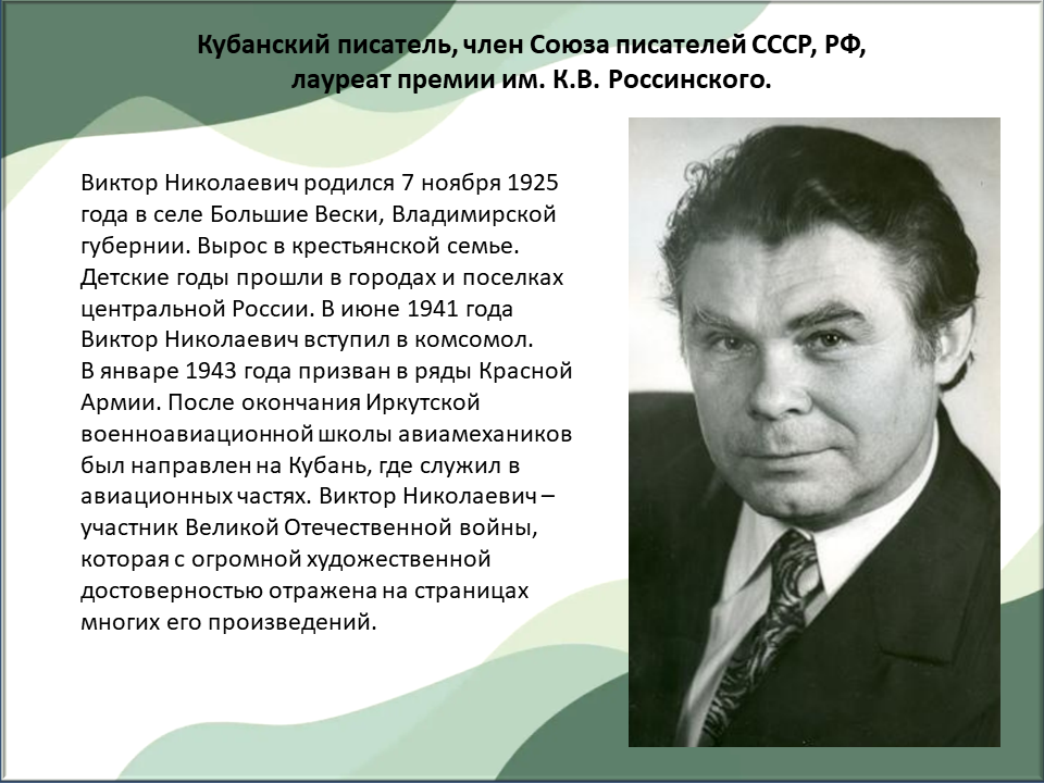07 ноября 2025 – 100 лет со дня рождения Виктора Николаевича Логинова, кубанского писателя, члена Союза писателей СССР.