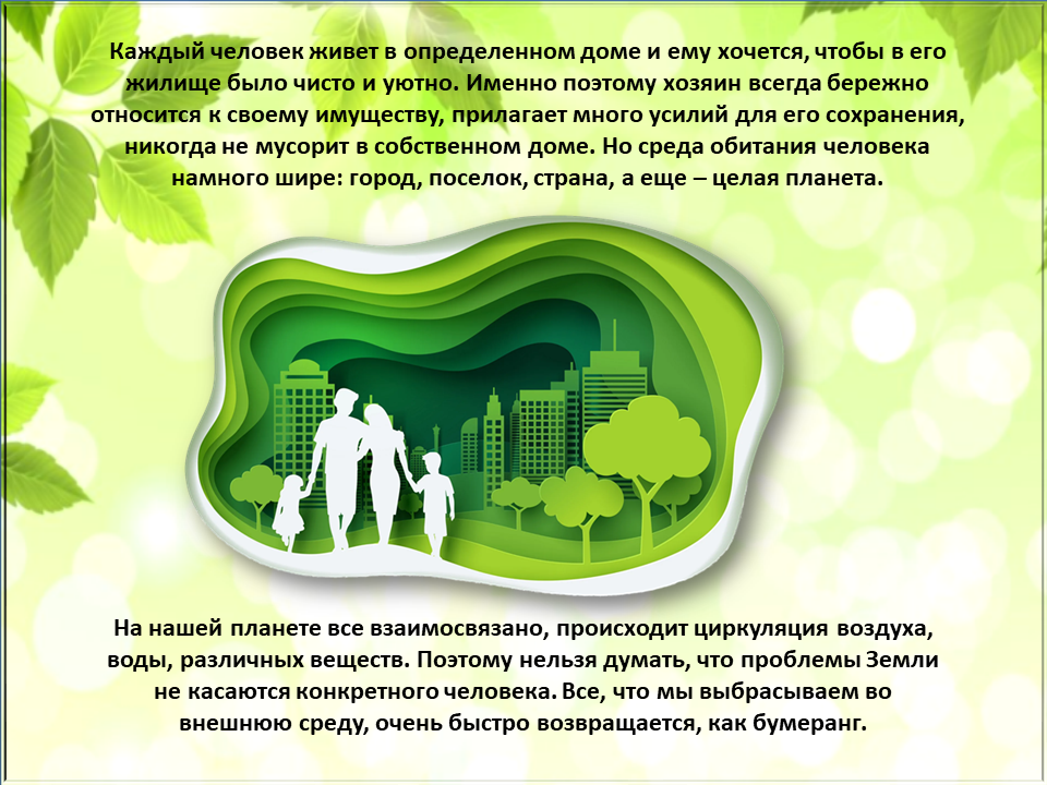 В настоящее время одной из наиболее актуальных проблем является проблема мусора или твердых бытовых отходов (ТБО). Из-за большого объема производимого мусора свалки сейчас занимают огромные территории. Кроме того, существует много материалов, например, пластиковые изделия, которые не разлагаются в природе, но в достаточно большом количестве используется в быту, и слишком быстро отправляются в мусорную корзину. Кроме того, отношение к проблеме ТБО поверхностное. Проблема отходов близка каждому человеку; вспомните, сколько мусора собирается в каждой семье ежедневно. Именно поэтому понимание проблемы твердых бытовых отходов и поиск решения должны начинаться с раннего детства.