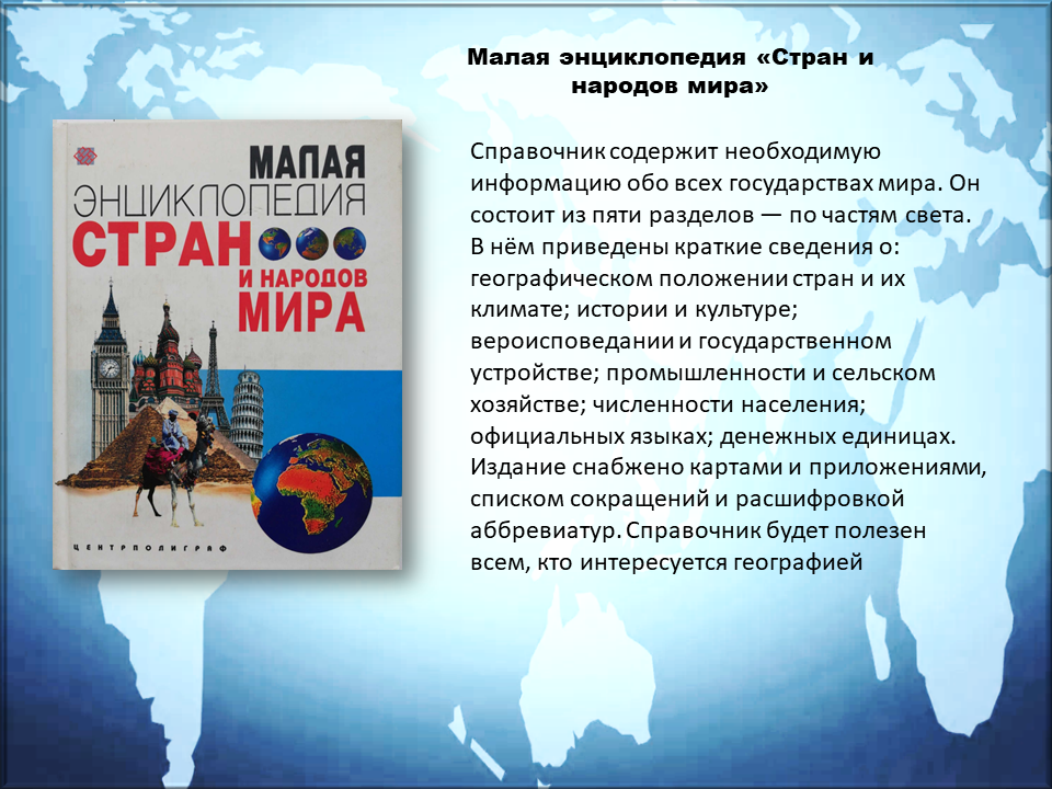 Итак, отправляйтесь в увлекательное путешествие по страницам представленных энциклопедий. Познавайте! Узнавайте! Читайте и изучайте!