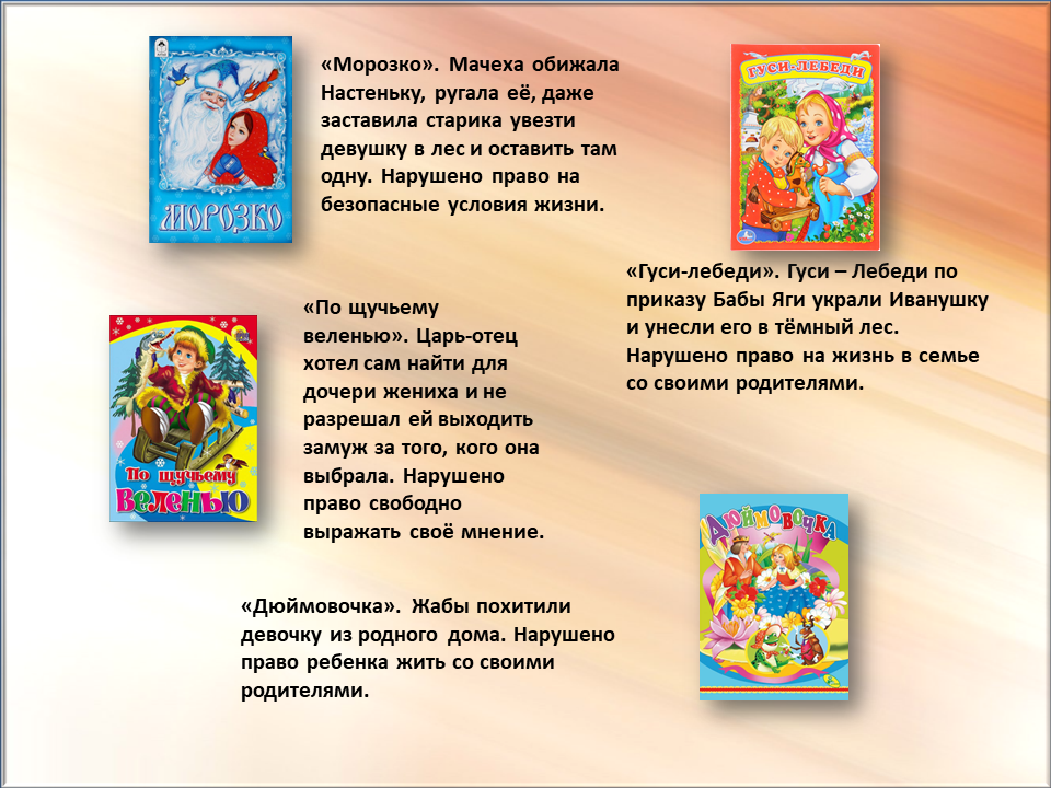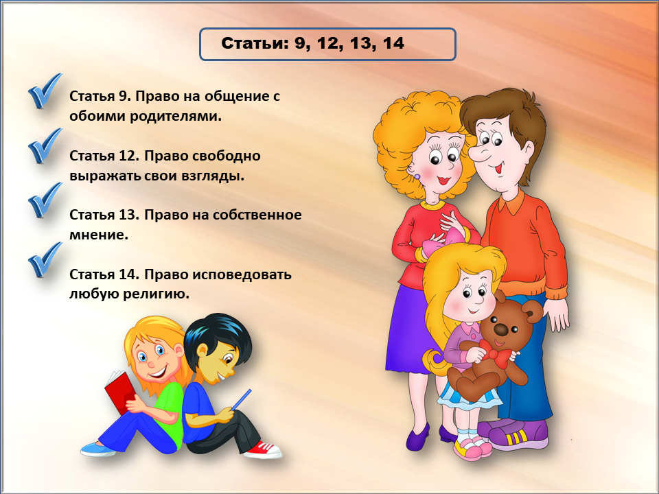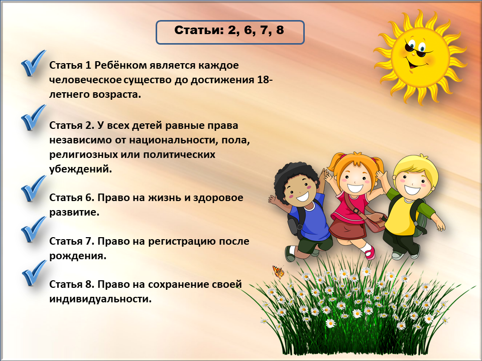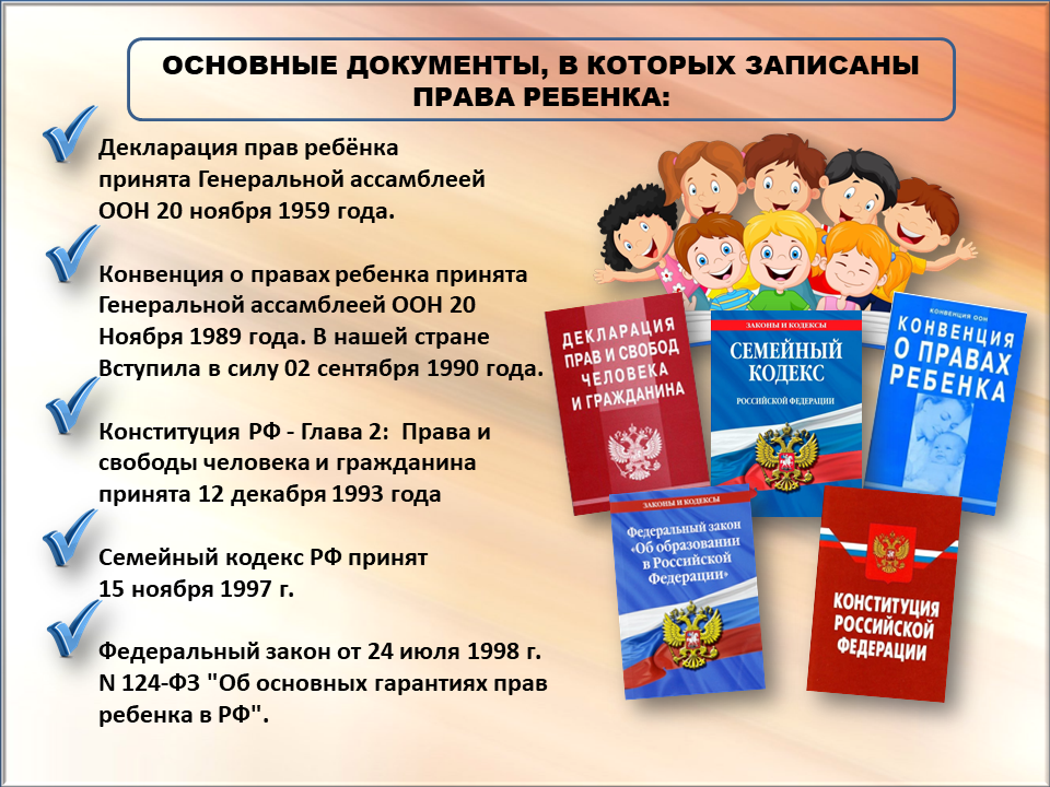 Жизнь человека начинается в семье. Если в семье царит мир и согласие, человек чувствует себя уверенно и спокойно. В Российской Федерации семья является объектом государственной семейной политики. Цель государственной семейной политики заключается в обеспечении государством необходимых условий для реализации семьей ее функций и повышении качества жизни. Семейные отношения регулируются в нашей стране семейным законодательством. Каждый должен знать и помнить, что при осуществлении собственных прав, недопустимо нарушение прав других людей. Все дети имеют равные права, независимо от расы, цвета кожи, пола, языка, религии, политических или других убеждений, а также независимо от места рождения и положения своих родителей.