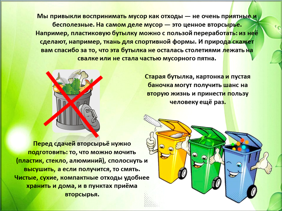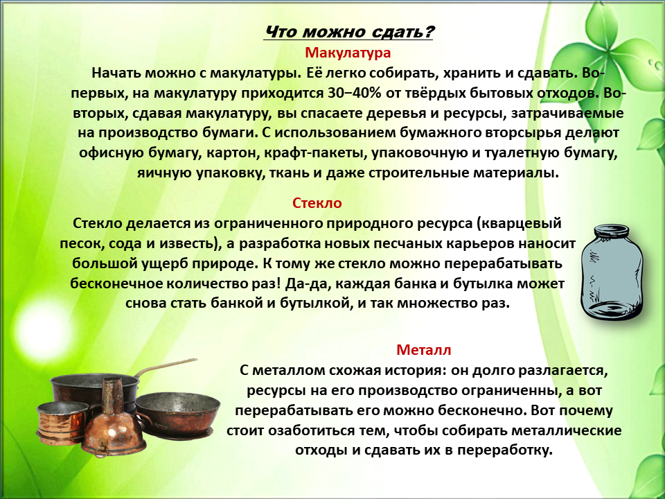 «Вторая жизнь» отходов помогает сберечь значительное количество сырья и энергии. Вторичная переработка отходов имеет важное значение.