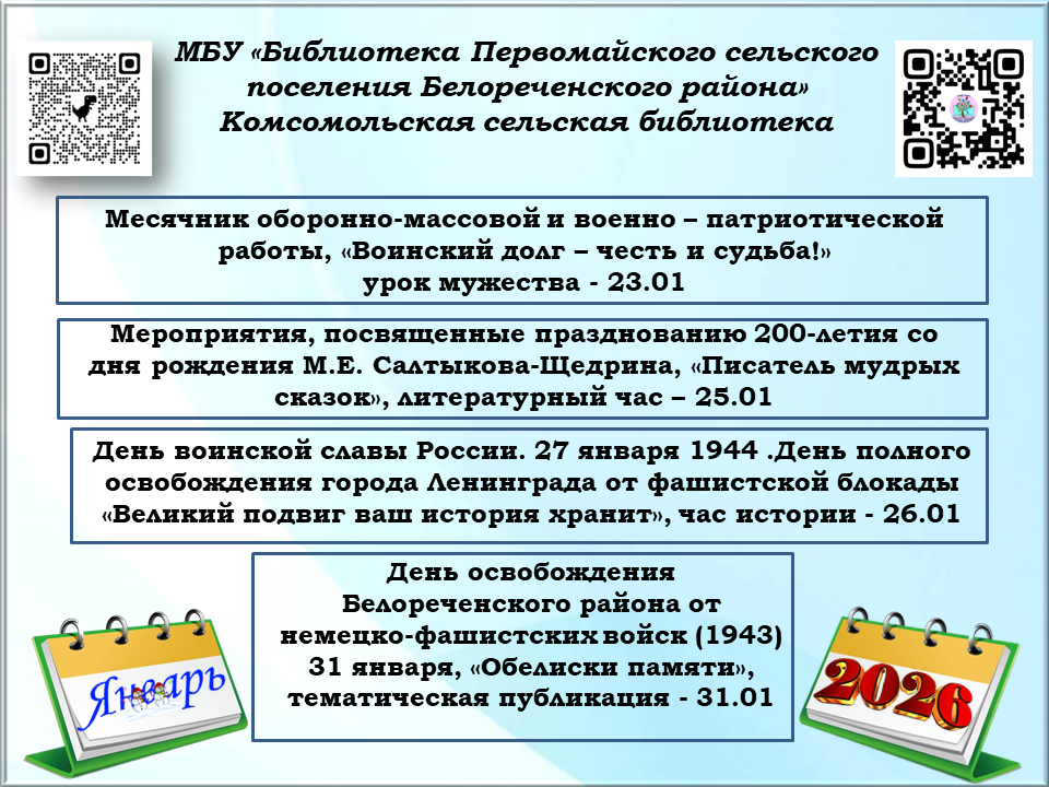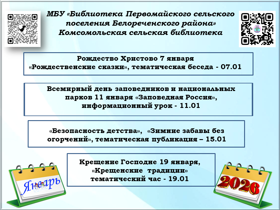 Афиша на январь, Комсомольская сельская библиотека