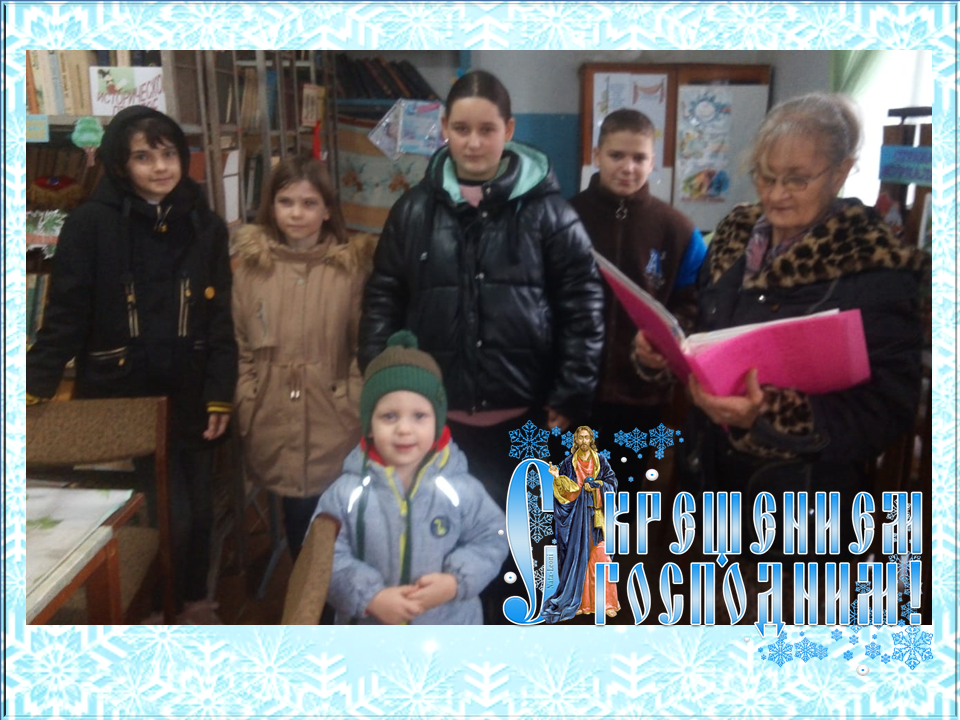 В библиотеке для читателей прошел тематический час. В ходе мероприятия ребята узнали, что двенадцать дней после Рождества до Крещения, которое празднуется Православной церковью 19 января, называются святками – то есть святыми днями, освященными приходом в мир Спасителя. На святки славят Христа, Новый год, будущий урожай, поздравляют друг друга. Всем родным, знакомым, соседям желают здоровья, счастья, всего наилучшего. Святки – самый веселый крестьянский праздник. Также участники мероприятия познакомились с традициями празднования Рождества и Крещения, с песенными сказаниями, приуроченными к этим праздникам. После этого участники мероприятия с удовольствием сами рассказали о заведённых в их семьях обычаях празднования, разгадали тематический кроссворд.