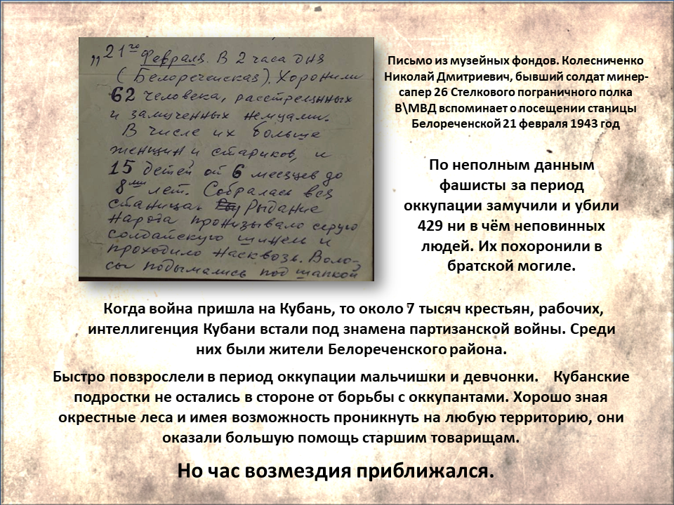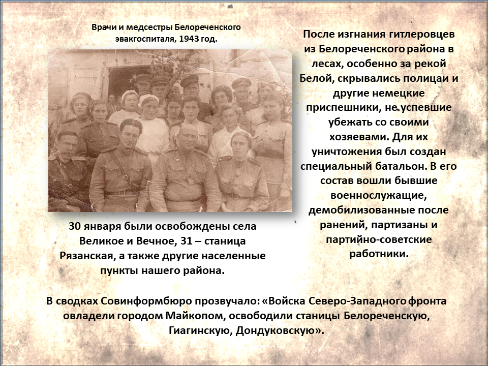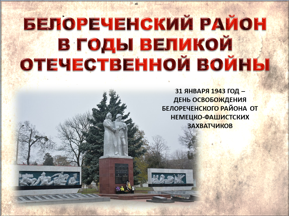 «Белореченский район в годы Великой Отечественной войны». 31 января 1943 года День освобождения Белореченского района от немецко-фашистских войск.