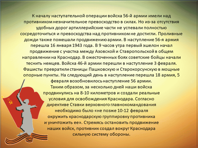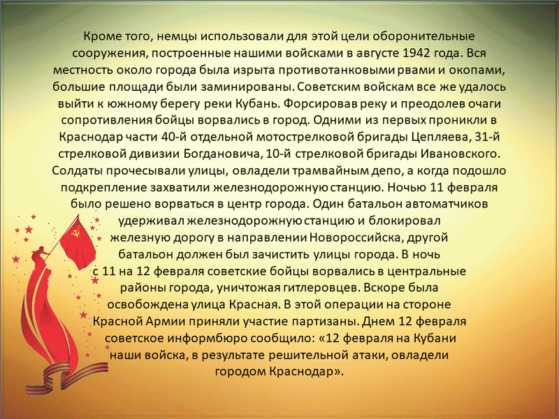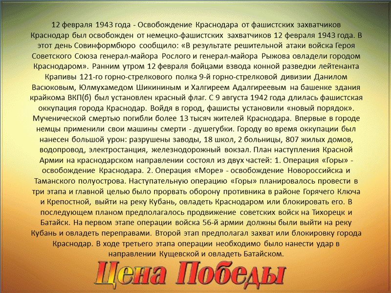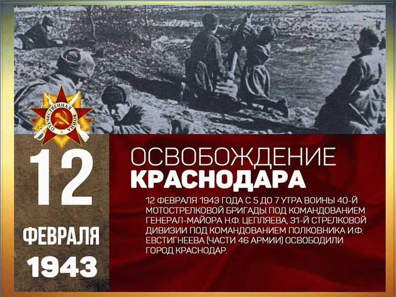 12 февраля 1943 — День полного освобождения г. Краснодара от немецко-фашистских захватчиков.
