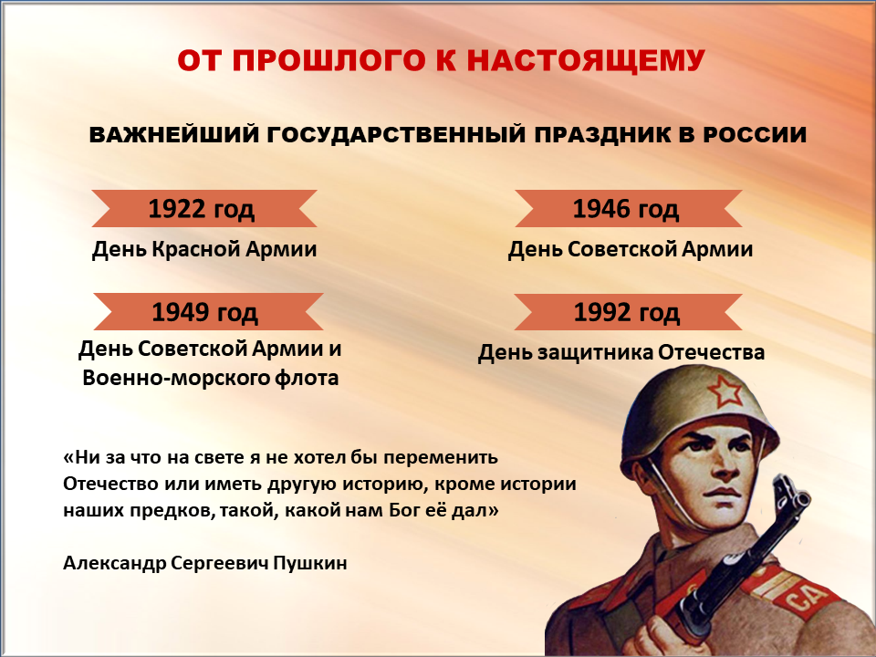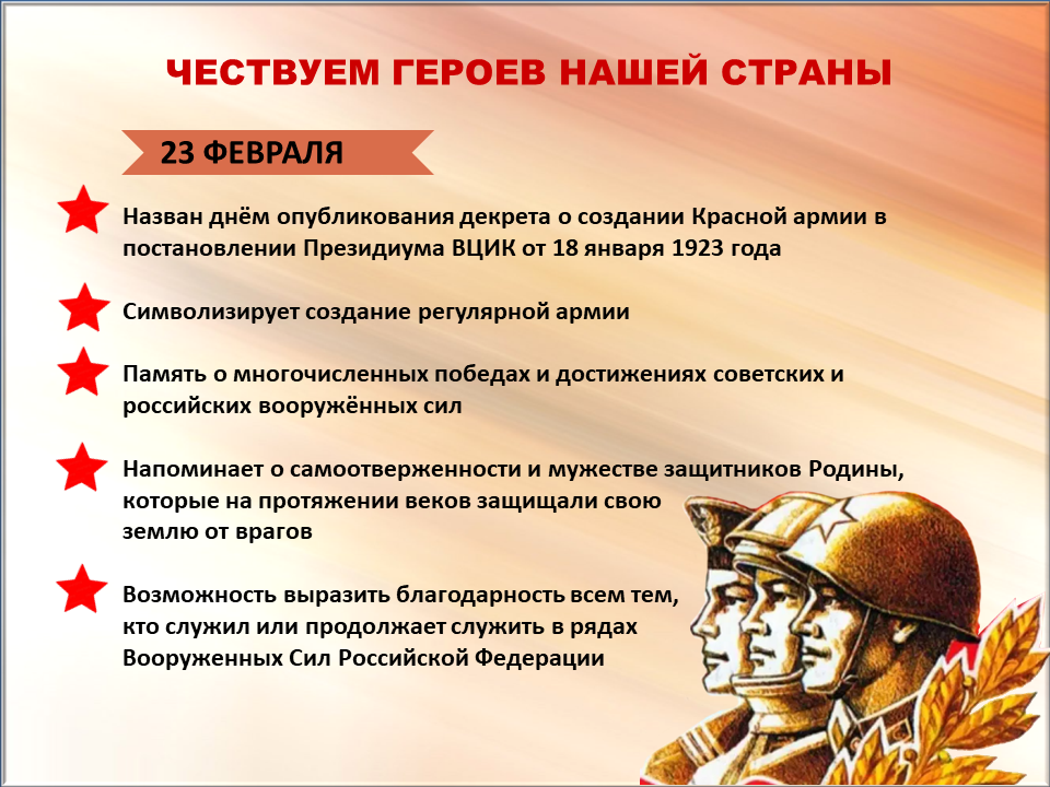 23 февраля — день, наполненный глубоким смыслом и уважением к тем, кто стоит на страже нашей Родины. Свое нынешнее название День защитника Отечества получил после распада Советского Союза. Раньше праздник был известен как День Красной армии, а затем — как День Советской армии и Военно-морского флота.