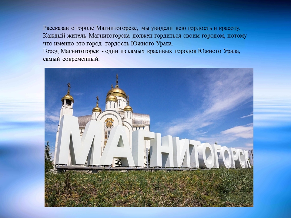 Магнитогорск – второй по численности населения город Челябинской области один из деловых, промышленных, культурных и туристических центров Южного Урала.
