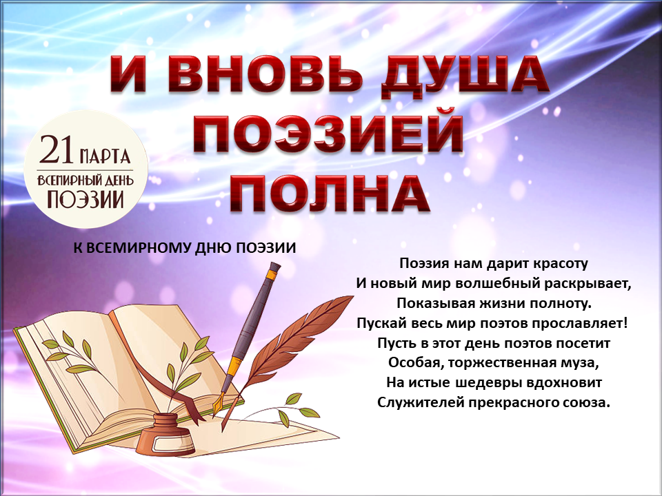 «И вновь душа поэзией полна», 21 марта Всемирный день поэзии.