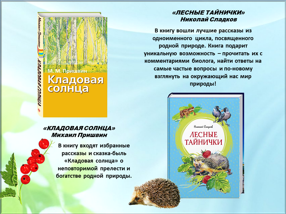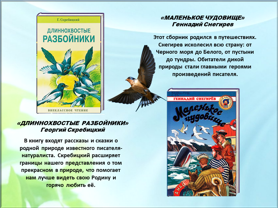 Во вселенной находится множество планет, но есть среди них самая лучшая для нас, самая прекрасная. Это планета Земля. Природа нашей планеты богата всевозможными красками и ароматами, она дарует жизнь и восхитительные минуты счастья. Глоток родниковой воды, живительный солнечный луч и чарующий аромат растений, пленяющее пение птиц и волнующие картины ландшафтов, порыв весеннего ветра и капля летнего дождя – вот нити, связывающие человека с природой, питающие и врачующие его. Каждый человек любит природу. Но есть такие люди, которые наделены особым отношением ко всему живому. Природа это чувствует и делится с ними своими самыми сокровенными секретами. Лучше всех понимают эти секреты – писатели. Но писатели бывают разные. Одни пишут про детей и про школу, другие в своих книгах описывают путешествия по разным странам, третьи сочиняют фантастические истории. А бывают такие писатели, которые пишут книги о природе и о животных. Таких писателей называют натуралистами. Книги писателей натуралистов помогут вам узнать и природе и ее обитателях много интересного и познавательного, полезного и поучительного.