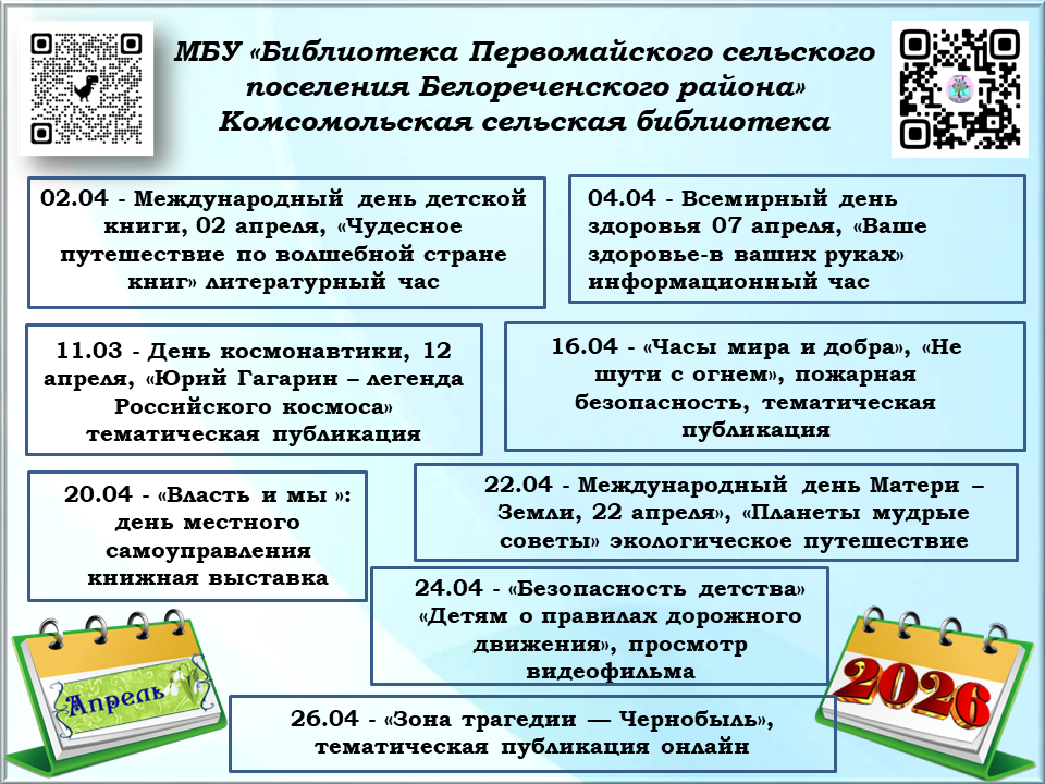 Афиша на апрель, Комсомольская сельская библиотека