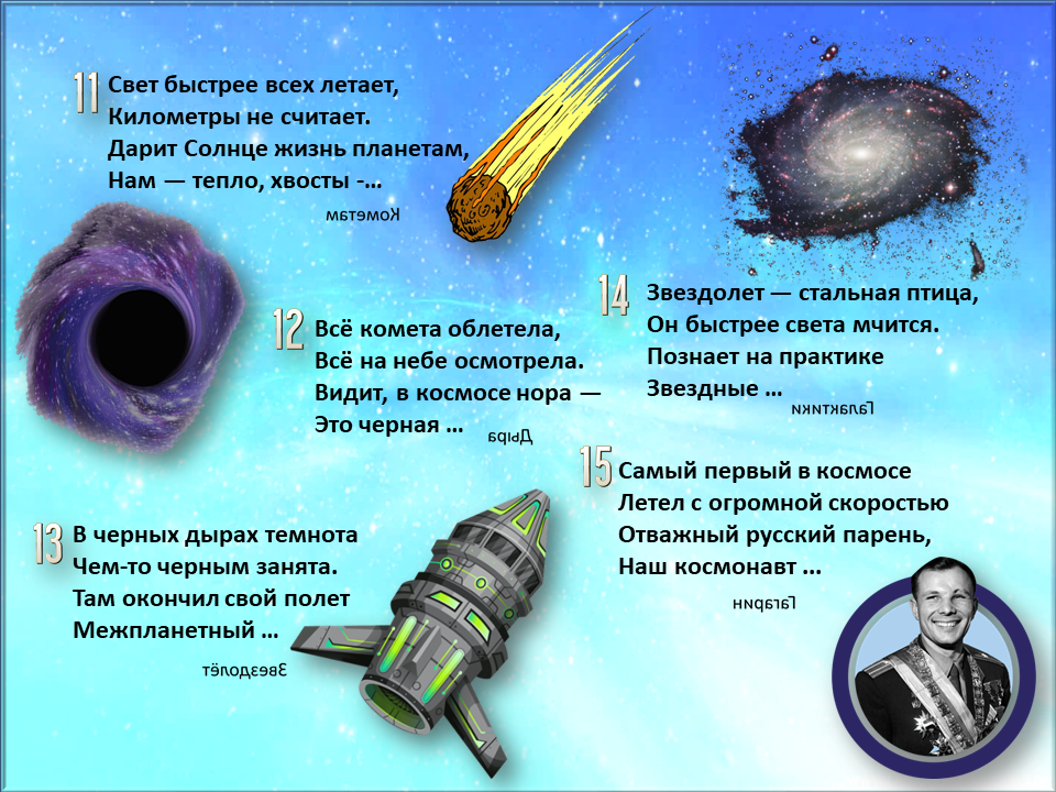 Ребята окунулись в загадочный мир звезд и планет, познакомились с историей развития космонавтики, узнали о том, как развивалась космонавтика, вспомнили имена первых космонавтов — героев. О первом полёте человека в космос, узнали много интересного из жизни Ю.А. Гагарина, историю создания первых космических кораблей, как проходит подготовка к полётам, чем питаются космонавты в невесомости и какие навыки и умения нужны для того, чтобы отправиться к звёздам.