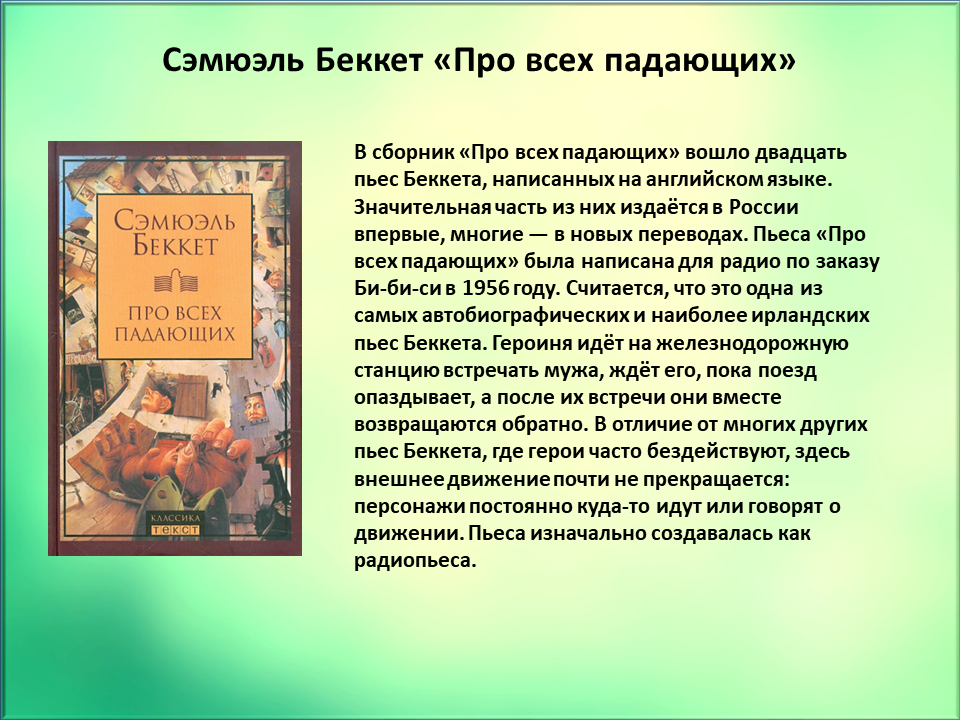 То, что он сделал в литературе и театре, вдохновило многих больших художников – от Тома Стоппарда и Иосифа Бродского до Людмилы Петрушевской и Алексея Балабанова, снявшего свою первую картину по мотивам беккетовских «Счастливых дней».