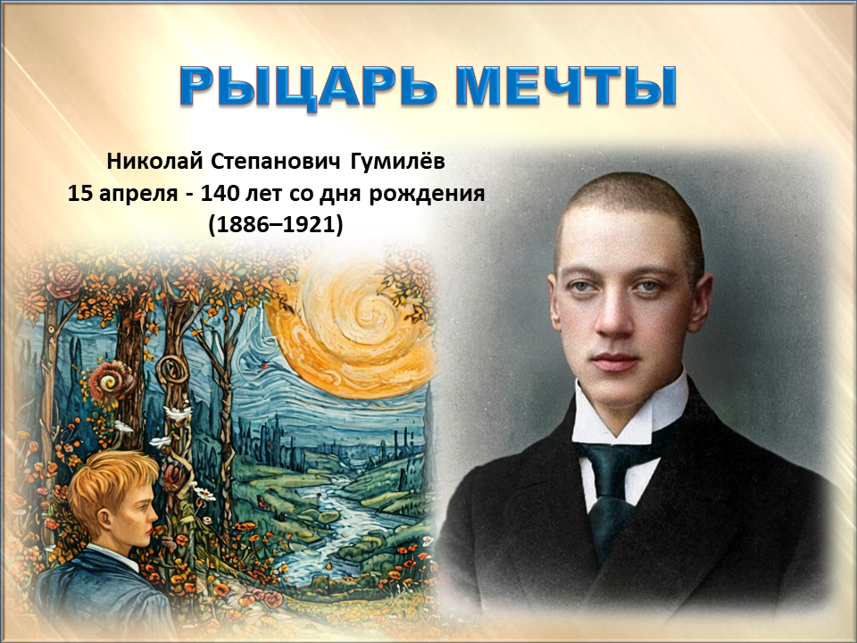 15 апреля – 140 лет со дня рождения русского поэта, переводчика и литературного критика Николая Степановича Гумилёва (1886–1921).