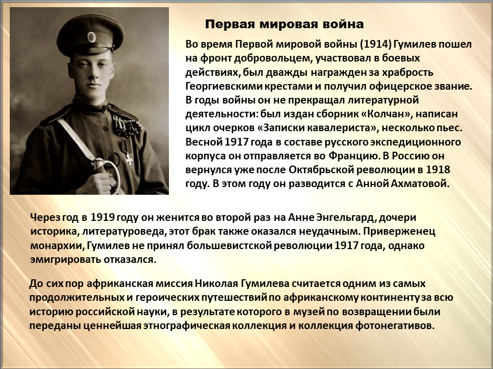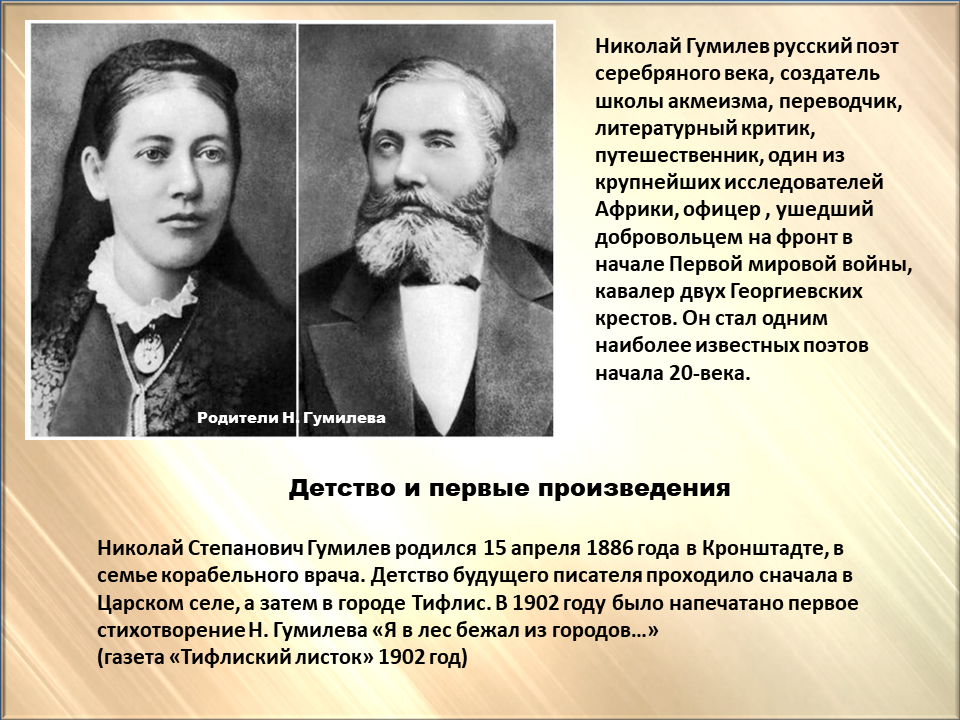 Наследие Николая Степановича Гумилева – поэта редкой индивидуальности – не утратило своей чарующей новизны, свежести, остроты чувств до сей поры. Он был одной из наиболее заметных фигур в