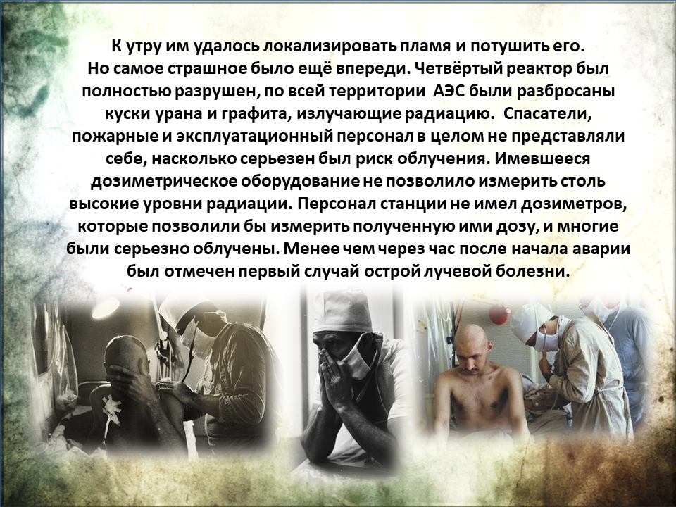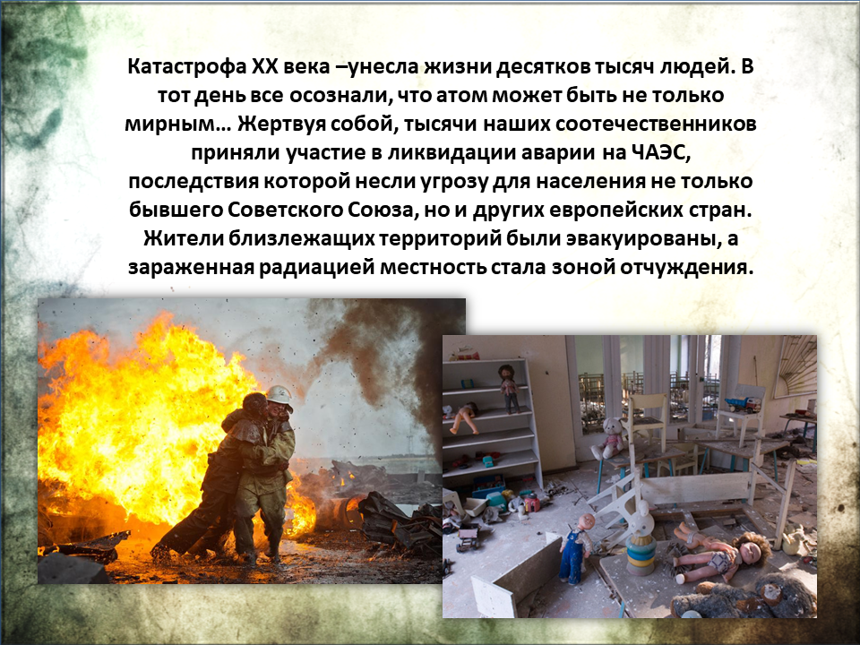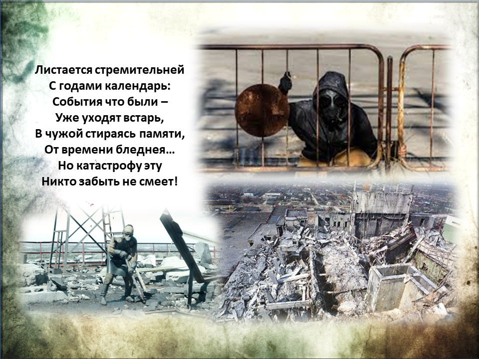 Чернобыльская катастрофа – авария, равной которой за последние годы отыскать невозможно. Черное ядовитое облако, вырвавшееся из саркофага 26 апреля 1986 года, принесло с собой смерть и болезни. Человек оказался бессильным перед атомом, который больше не желал оставаться мирным. Каждый день отдаляет человечество от этих грустных событий. Все меньше с каждым годом остается тех, кто устранял последствия техногенной катастрофы. Забыть об этом событии нельзя. Мы должно извлечь уроки из ошибок, которые допустили люди в прошлом, и уберечь своих детей, себя и потомков от подобных бед.