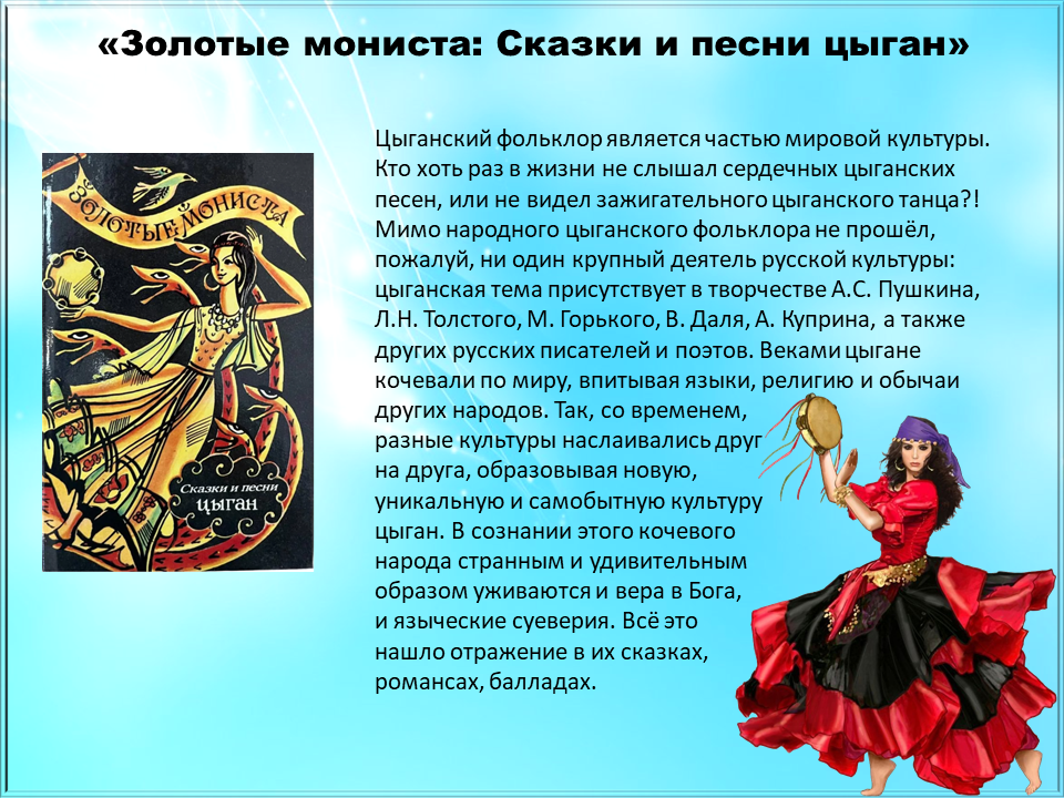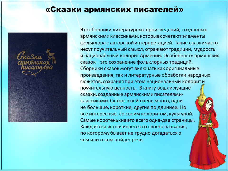 На земле тысячи сказок, принадлежащих тысячам народов. У каждого времени свои сказки, они отражают быт и традиции конкретного народа, его мудрость и сущность. Мы живем в многонациональной стране, в России, где тесно переплетаются этносы всех народов.